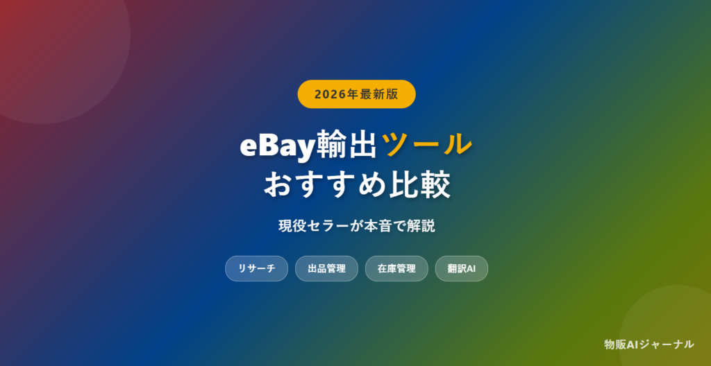 eBay輸出の現役セラーが、2026年最新のeBay輸出ツールを本音で比較。月額0円〜で使えるリサーチ・出品管理・在庫管理・翻訳の全10ツールを、初心者〜上級者向けに料金・機能付きで解説。 -